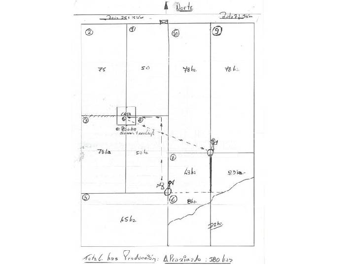 ▶ En total son 631 hectáreas. Está dividido en 6 lotes, de los cuales 570 hectáreas se siembran y el resto son bajo.