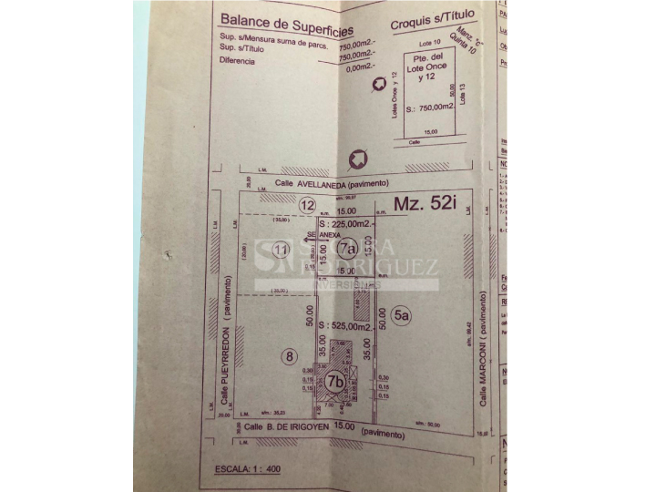 VENDIDO: LOTE EN YRIGOYEN ENTRE PUEYRREDÓN Y MARCONI – PELLEGRINI – BS AS